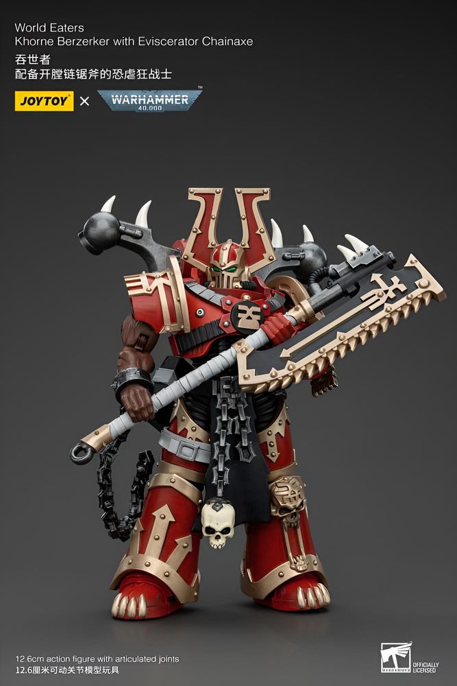 Warhammer 40k Actionfigur 1/18 World Eaters Khorne Berzerker with Eviscerator Chainaxe 13 cm