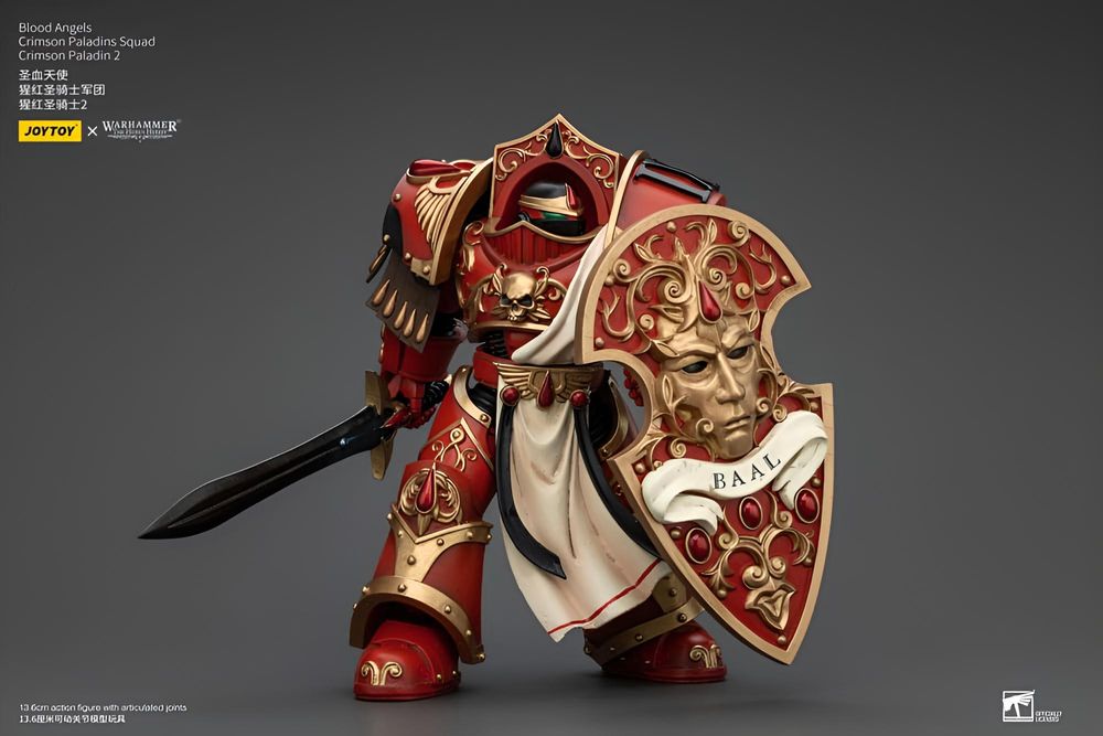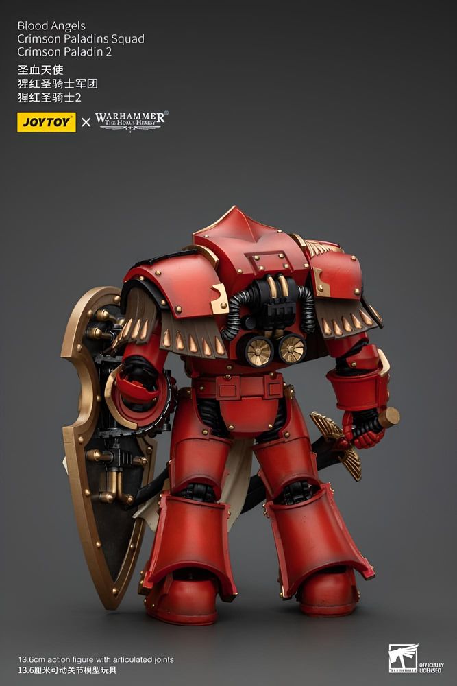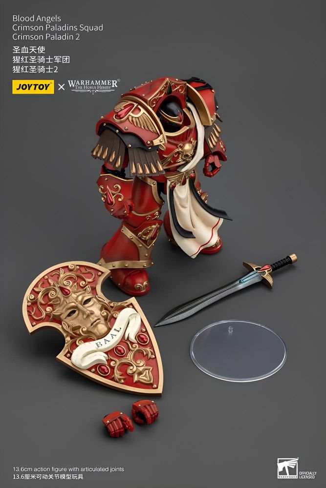 Die Warhammer The Horus Heresy Actionfigur „Blood Angels Crimson Paladins Squad – Crimson Paladin 2“ im Maßstab 1/18 bildet einen ikonischen Elitekrieger der Blood Angels in eindrucksvoller Detailtiefe ab. Mit einer Höhe von etwa 14 cm eignet sich die Figur sowohl für Sammlerregale als auch für dynamische Tabletop‑Szenen.