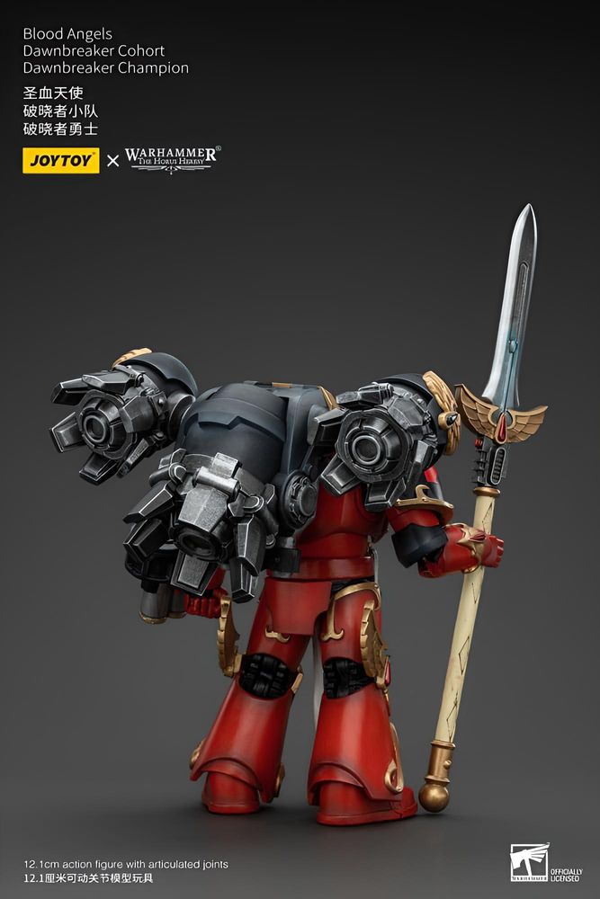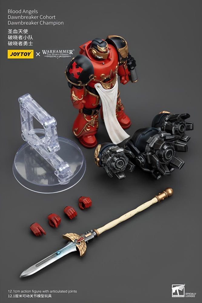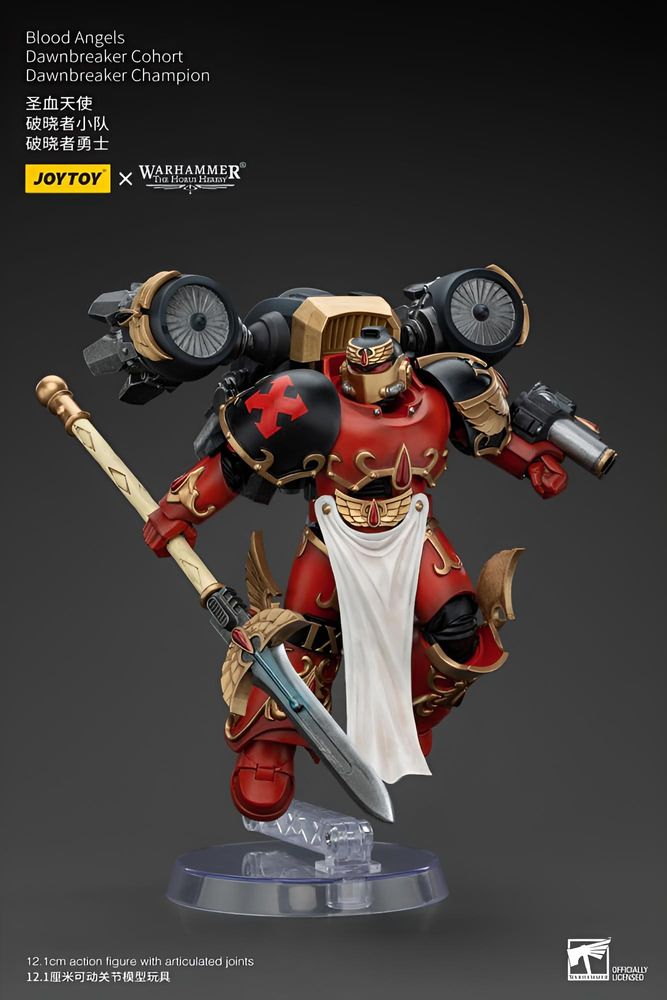Der Dawnbreaker Champion besticht durch seine markante Rüstung und sorgfältig bemalte Details, die den ikonischen Stil der Blood Angels einfangen. Mehrere Bewegungspunkte ermöglichen abwechslungsreiche Darstellungen im Display oder auf dem Spieltisch.