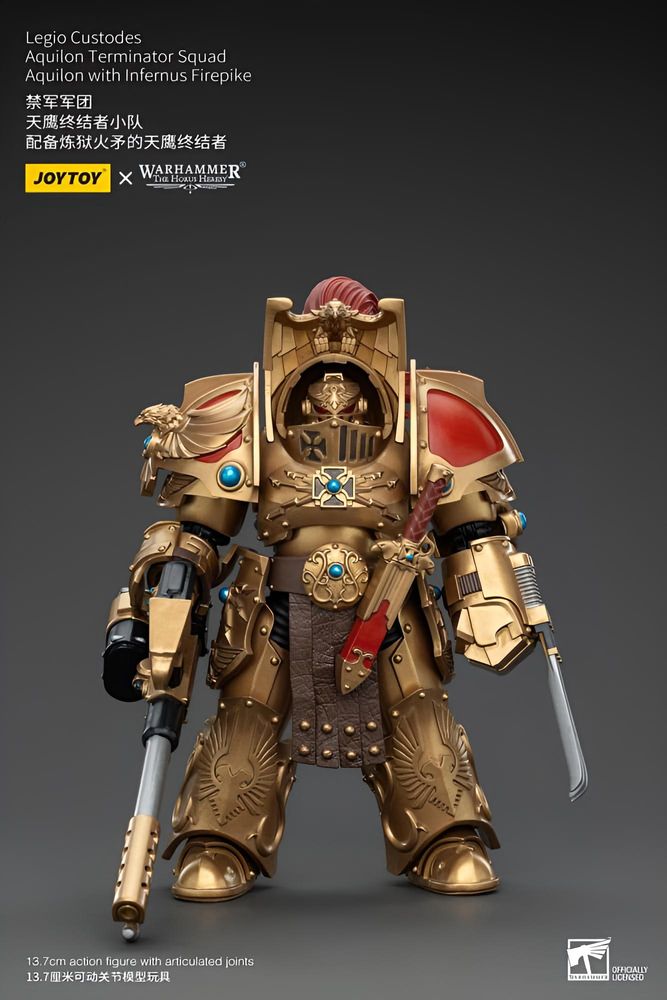 Warhammer The Horus Heresy Actionfigur 1/18 Legio Custodes Aquilon Terminator Squad Aquilon with Infernus Firepike 14 cm