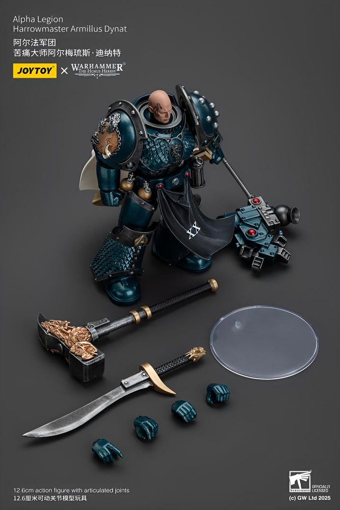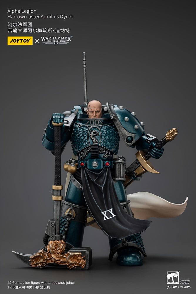 Die Warhammer The Horus Heresy Actionfigur Alpha Legion Harrowmaster Armillus Dynat bringt die geheimnisvolle Taktik-Elite des 31. Jahrtausends direkt ins Regal. Mit einer Höhe von etwa 20 cm überzeugt die Figur durch detailreiche Rüstungselemente, präzise nachgebildete Symbole der Alpha Legion und eine dynamische Pose, die den Charakter des legendären Strategen eindrucksvoll einfängt.