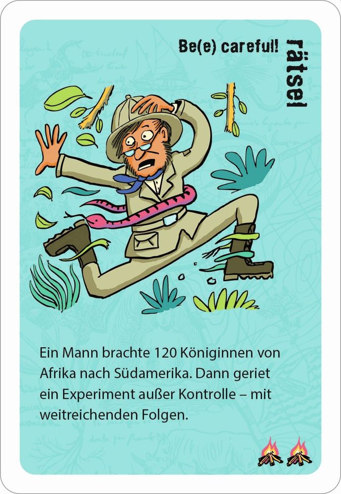 Wenn die Sonne erbarmungslos vom Himmel brennt, der Trinkwasservorrat langsam schwindet und man von einer Meute hungriger Hyänen umkreist wird – dann ist Zeit für eine Runde Action. Die adventure stories versammeln 50 gefährlich knifflige Rätsel voller Abenteuer, die auch dem scharfsinnigsten Ratefuchs die Schweißperlen auf die Stirn treiben. Egal, ob kopflose Kakerlaken, hilfreiche Haie oder gefräßige Geier: In diesen nervenaufreibenden Rätselgeschichten passieren haarsträubende Dinge, deren Geheimnisse man nur durch Fragen, Raten und Tüfteln lüften kann. Für alle, die das echte Abenteuer suchen, ist diese black stories Junior Edition genau das Richtige.