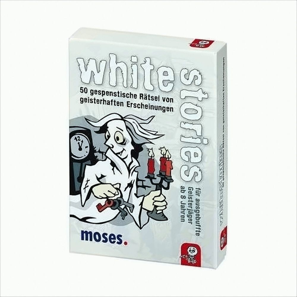 Die white stories beinhalten 50 gespenstische Rätsel von geisterhaften Erscheinungen. Alles, was ausgebuffte Geisterjäger interessiert: Geisterstunde, Gepsenster, kleine Vampire, Poltergeister, Halloween, Werwölfe, Fledermäuse, finstere Gemäuer und schauerliche Spukschlösser...