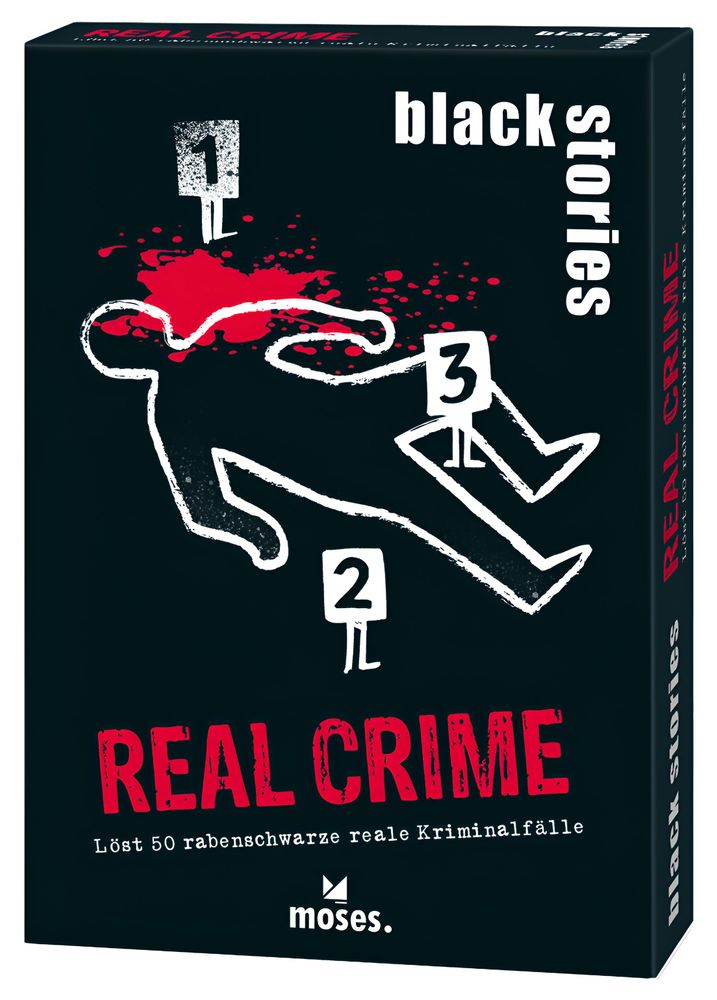 Sie sind dunkel, rätselhaft und durch und durch böse: black stories - Das ist DIE Kultreihe bei moses. und das schon seit über 10 Jahren! In den morbiden, gruseligen, erschreckenden und zum Teil unterhaltsamen Rätseln geht es um den Tod und Unfälle, die nicht grauenhafter sein könnten. Wie starb der Nackte am Berghang und warum hatte er ein Streichholz in der Hand? Warum freuen sich drei Einarmige über ein Paket mit einem abgetrennten Arm? Weshalb aß die Familie die Großmutter löffelweise auf? Durch Raten soll genau die Geschichte dahinter herausgefunden werden. Nicht immer ganz so einfach… 50 brandneue und tiefdunkle Rätsel-Geschichten lassen dir das Blut in den Adern gefrieren. Und das Unheimlichste an dieser REAL CRIME EDITION: Die Stories sind real. Sie sind wirklich passiert, exakt wie beschrieben, bis auf den letzten Blutstropfen. Ob mörderisches Verbrechen, tragischer Unglücks- oder makabrer Todesfall: Geschichten, die das Leben schrieb! Wenn dir jetzt noch nicht die Haare zu Berge stehen, dann löse das Rätsel. Durch Fragen, Raten und Tüfteln wird der Tathergang Stück für Stück rekonstruiert. Ein wirklich gruseliger Rate-Spaß!