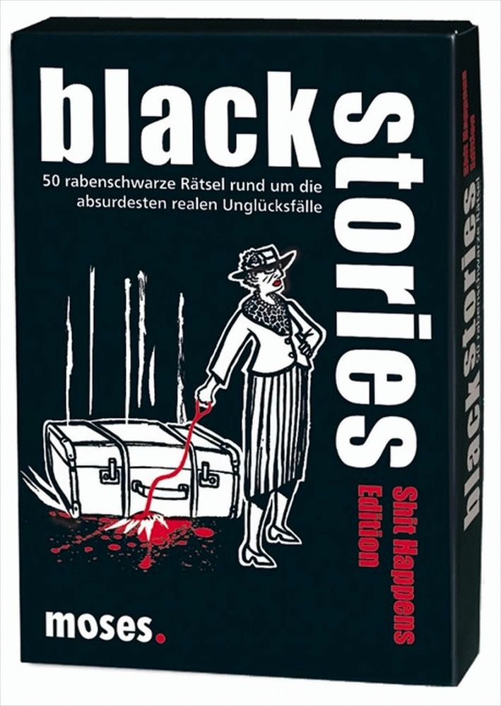 Sie sind schwarz, rätselhaft und durch und durch böse: black stories - Das ist DIE Kultreihe bei moses. und das schon seit über 10 Jahren! In den morbiden, gruseligen, erschreckenden und zum Teil unterhaltsamen Rätseln geht es um den Tod und Unfälle, die nicht grauenhafter sein können. Wie starb der Nackte am Berghang und warum hatte er ein Streichholz in der Hand? Warum freuen sich drei Einarmige über ein Paket mit einem abgetrennten Arm? Weshalb aß die Familie die Großmutter löffelweise auf? Durch Raten soll genau die Geschichte dahinter herausgefunden werden. Nicht immer ganz so einfach…