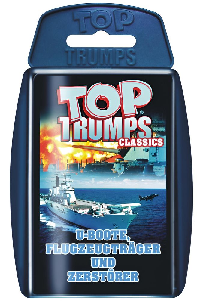 Das TOP TRUMPS U-BOOTE, FLUGZEUGTRÄGER UND ZERSTÖRER bietet Spaß für alle Fans der spektakulärsten Fahrzeuge auf See, mit denen sich die Spieler gegenseitig übertrumpfen können.