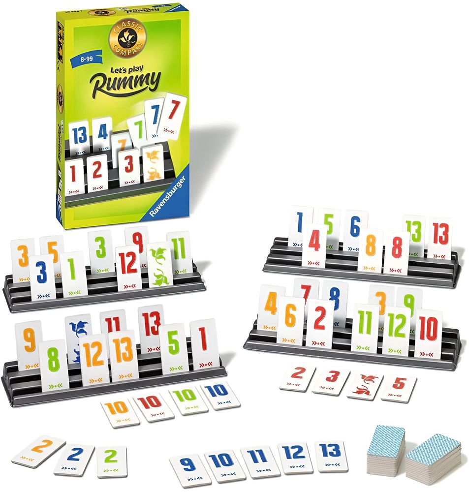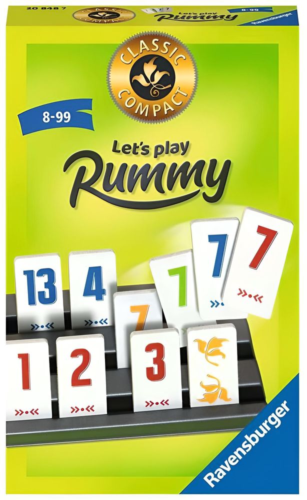 Eines der wohl bekanntesten Zahlen-Legespiele erscheint in kompaktem Format. Der Klassiker ist in jedem Urlaub oder Spieleabend dabei und eignet sich ideal als günstiges Geschenk, an dem 2 bis 4 Spieler ab 8 Jahren immer wieder Spielspaß erleben. Unzählige Möglichkeiten gibt es beim Anlegen der Zahlenkärtchen an unterschiedliche Kombinationen, die sich im Laufe des Spiels auf dem Tisch bilden. Wer wird mit Taktik, etwas Glück und dem besten Überblick zuerst alle seine Kärtchen los?