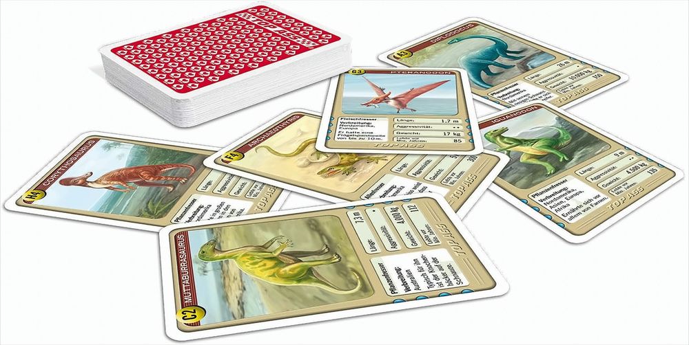 Die Giganten der Urzeit, die Dinosaurier von Tyrannosaurus Rex bis Brontosaurus, sind faszinierende Geschöpfe der Urgeschichte. Daten & Fakten zu Länge, Aggressivität, Gewicht und Lebenszeit ergänzen das ASS Altenburger-Quartett. Ob Trumpfen mit dem ältesten Dino oder als klassisches Quartettspiel - Spielspaß inklusive.