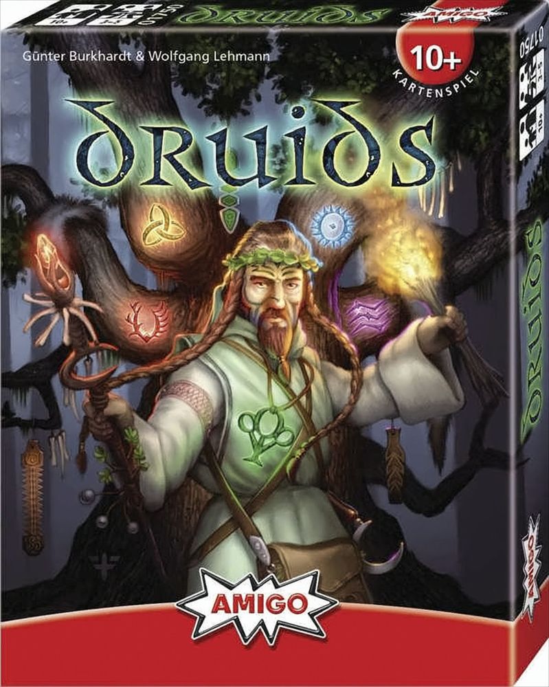 In der magischen Welt der Druiden versuchen die Spieler durchStiche ihre vier mächtigen Disziplinen (Farben) zu erhalten.Jeder erhaltene Stich wird in seine Disziplinen sortiert und aufabgelegt. Je höher die letzte Karte einer Disziplin ist, destobesser stehen die Chancen auf den Sieg. Doch aufgepasst,erhält ein Spieler die fu¨nfte Disziplin, verliert er. Zudem könnenSonderkarten so manch erworbene neue Stärke auf denPru¨fstand stellen. Wer am Ende die meisten Erfahrungspunktegesammelt hat, wird zu An dòigh, dem Weisen.Druids ist mit seinen 65 fantasievoll gestalteten Karten derneueste Titel in der erfolgreichen Wizard-Reihe.