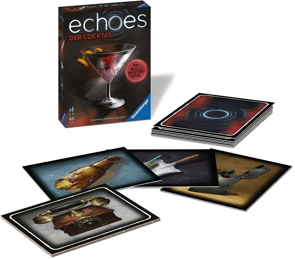 In einer illegalen Kneipe schmiedet die New Yorker Unterwelt finstere Pläne. Das Echo der Vergangenheit birgt die Identität ihres Anführers. echoes ist ein einzigartiges, kooperatives Audio Mystery Spiel. Die Spieler hören mithilfe der kostenlosen Ravensburger echoes App mysteriöse Geräusche und Stimmen, die mit dem Spielmaterial verbunden sind. Gemeinsam suchen sie nach versteckten Hinweisen in den Geräuschen, um die Geschichte in die richtige Reihenfolge zu bringen und den Fall zu lösen.