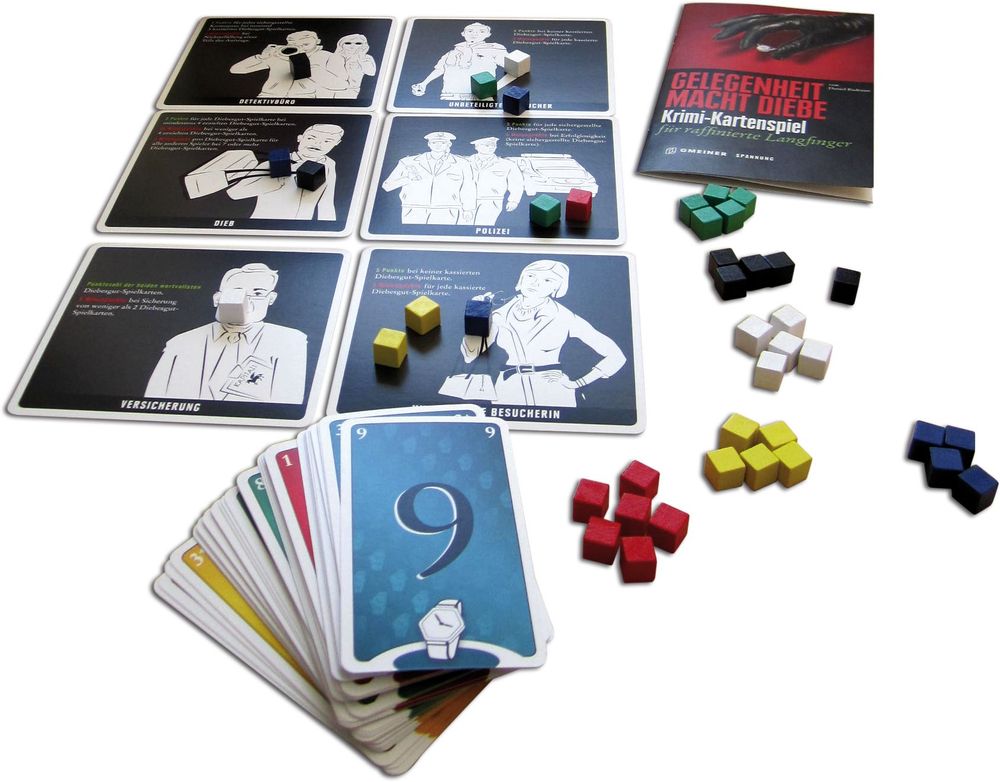 FETTE BEUTE. Die alljährliche Uhren- und Schmuckmesse hat ihre Tore geöffnet. An unzähligen Ständen werden sündhaft teure Uhren, kostbare Edelsteine und wertvoller Schmuck präsentiert. Viel Geld ist im Spiel. Da kann man schon in Versuchung kommen. Aber lohnt sich ein Beutezug wirklich? Wie gut sind die eigenen Karten? Und was haben die anderen Anwesenden vor? Denn neben raffinierten Langfingern sind auch Polizisten, Versicherungsagenten und Privatdetektive vor Ort. Dazu die vielen unbeteiligten Passanten, die nicht im Traum an einen Diebstahl denken. Aber alle wollen punkten!
