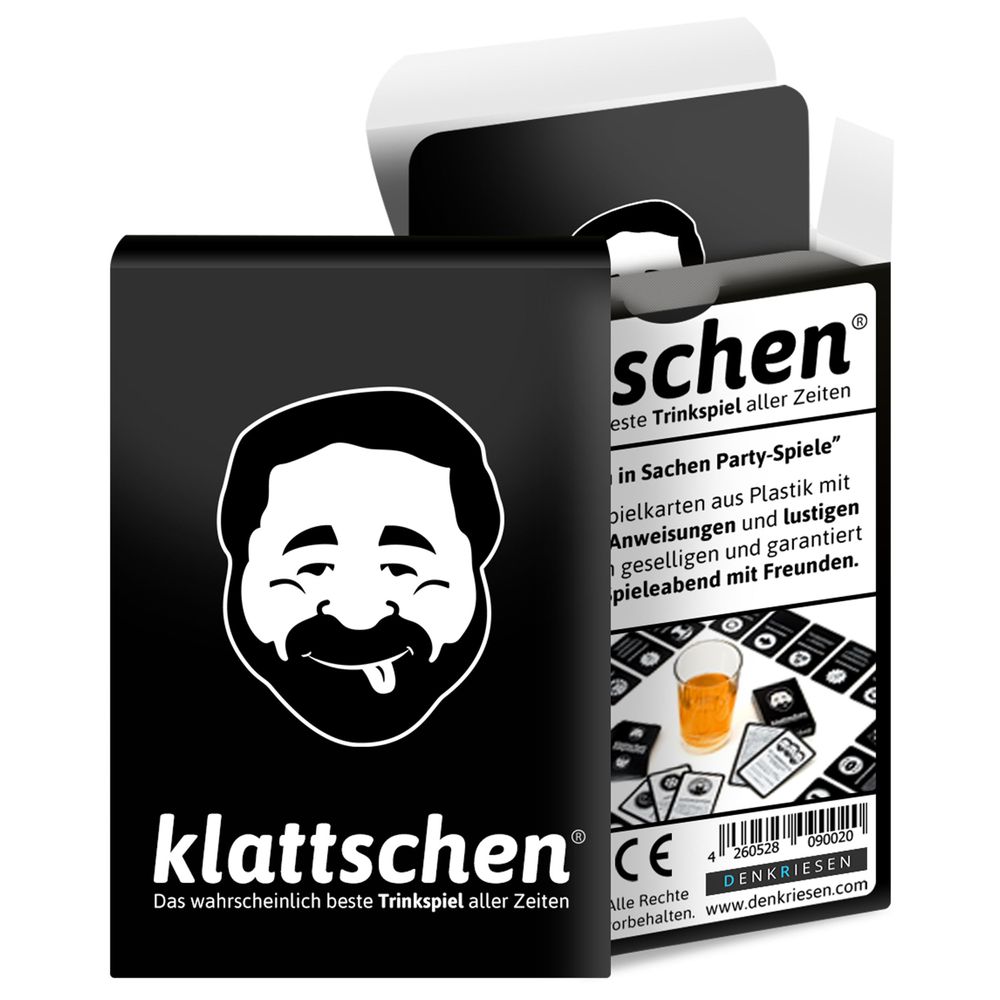 Langweilige Party in Sicht? Nicht mit diesem Spiel! Mit dem Kult-Trinkspiel klattschen® der Marke DENKRIESEN® hast du das perfekte Spiel um einen feucht-fröhlichen Abend mit deinen Freunden zu erleben. Das Kartenspiel, was auf dem Grundgedanken des amerikanischen Studenten-Klassikers "RING of FIRE" oder "KINGS CUP" basiert, besteht aus 57 Spielkarten mit vielen verschiedenen Aufgaben und Anweisungen. Wer sich nicht an die Anweisungen hält oder einen Fehler bei der Ausführung macht, muss trinken (im Spiel "klattschen" genannt).