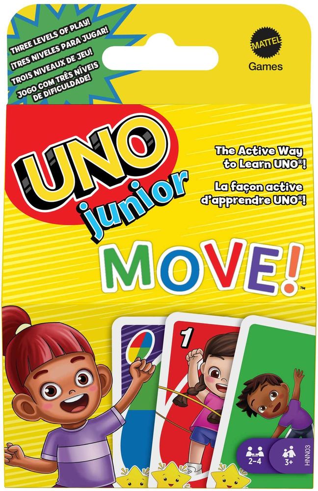 - UNO Junior Move! ist eine aktive Variante des beliebten UNO-Kartenspiels für Kinder und Familien.