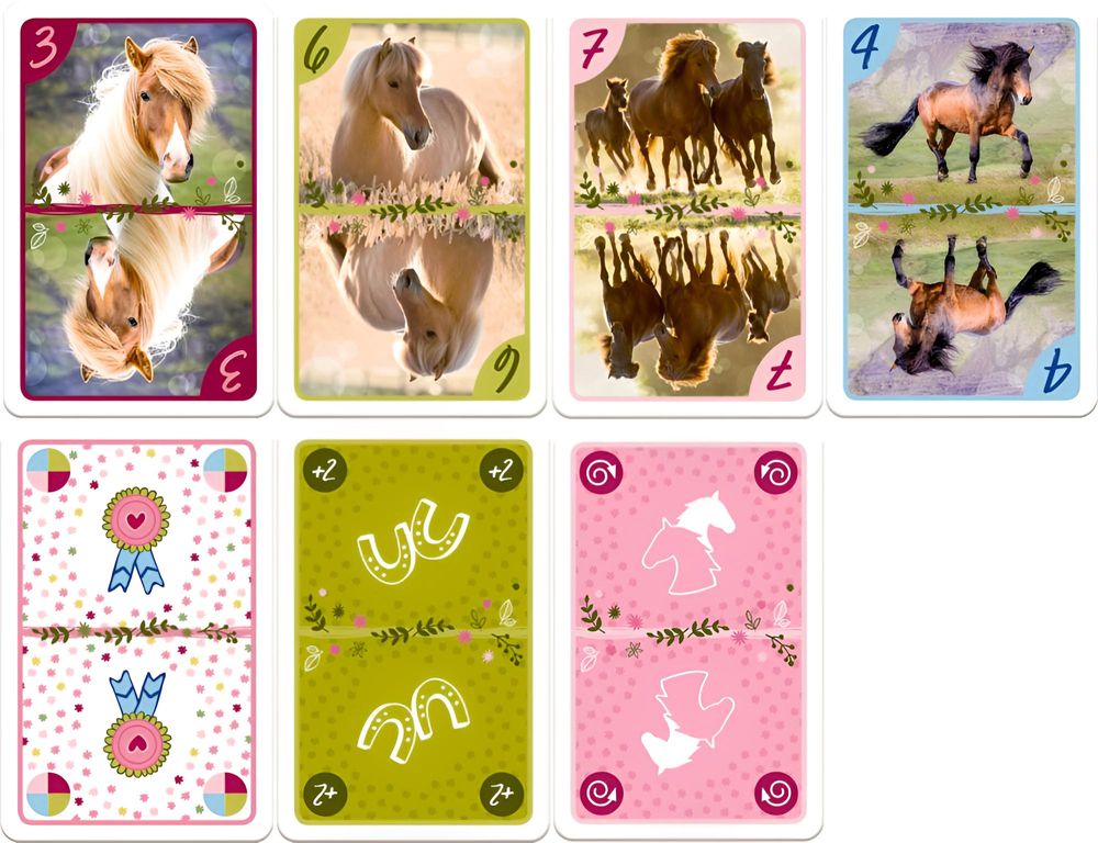 Der Kartenspiel-Klassiker im Pferdefreunde-Design. Wer legt am schnellsten alle seine Karten ab? Und bloß nicht vergessen, rechtzeitig Hopp Hopp" zu rufen! Pferde-Spaß von Die Spiegelburg garantiert. Inhalt: 52 Spielkarten (inkl. 16 Aktionskarten) und Anleitung. Für 2-4 Spieler, ab 5 Jahre.