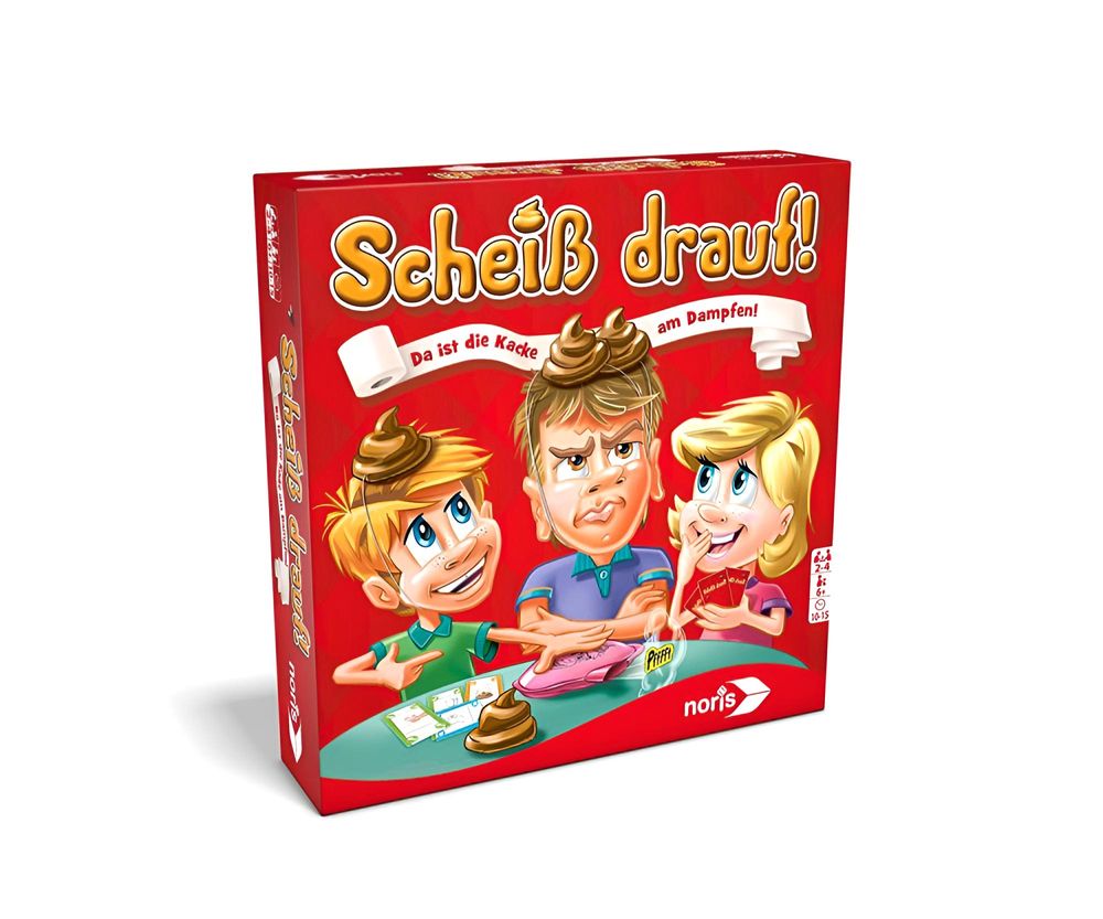 Bei Scheiß Drauf kommt es auf schnelle Reaktion an. Zuerst werden die Karten gleichmäßig an die Spieler verteilt. Und dann geht's los! Jeder muss schnell seine Karten auf einen gemeinsamen Ablagestapel legen. Dabei muss immer die Reihenfolge beachtet werden, auf die Toilette einen Haufen, dann das Klopapier, und zum Schluss die Hände waschen! Wer am langsamsten ist, muss sich einen Kackhaufen aufsetzen!