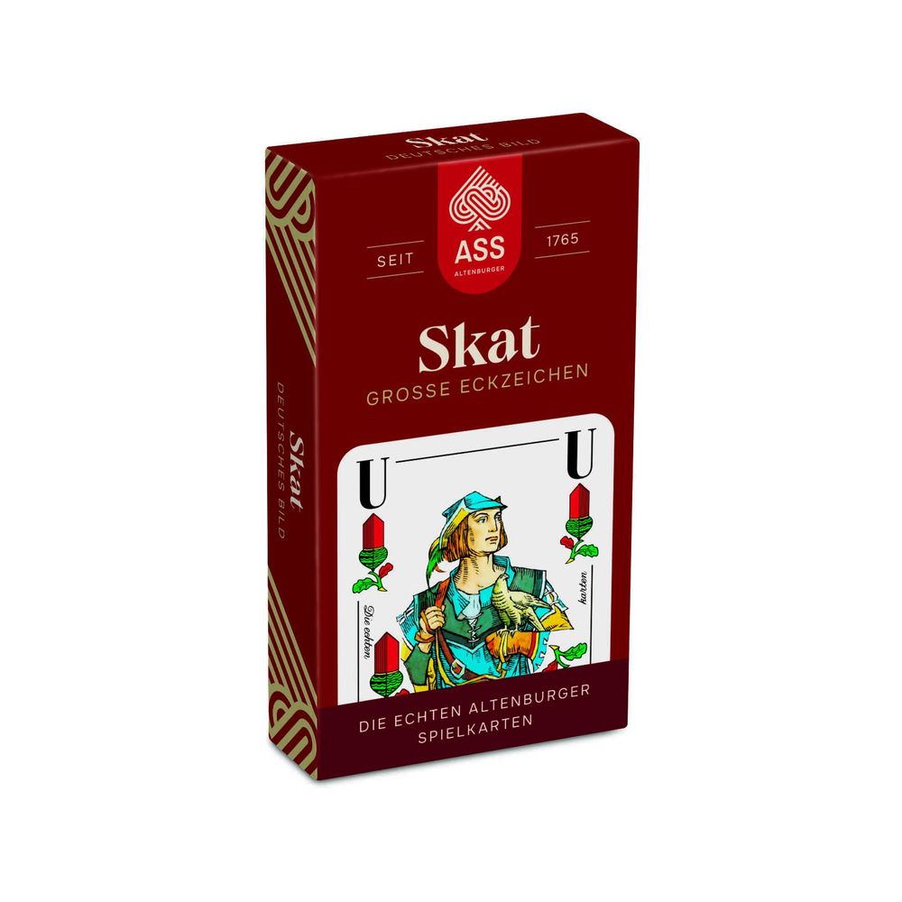 Skat, große Eckzeichen, deutsches Bild (plastikfrei im Spiel) bietet klassisches Kartenspielvergnügen mit besonders guter Lesbarkeit. Die Karten sind mit großen Eckzeichen ausgestattet, sodass Werte und Farben schnell zu erkennen sind – ideal für gemütliche Runden mit Familie, Freunden oder im Verein. Das traditionelle deutsche Bild mit Eicheln, Grünen, Herzen und Schellen sorgt für authentisches Spielgefühl und ist für viele beliebte Kartenspiele geeignet.