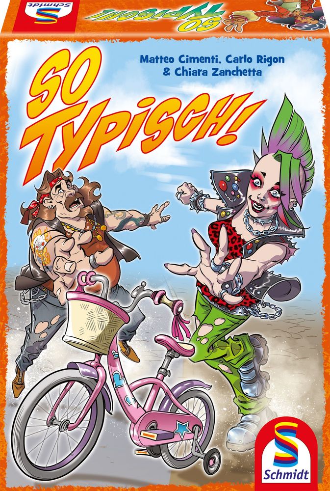 "Natürlich will das Kind die Bohnen! Es will doch groß und stark werden!" Das kann man so sehen, aber sehen es die Mitspieler genauso? So typisch! ist ein witziges, kooperatives und kommunikatives Spiel voller Stereotypen und Klischees! Hier kämpfen alle Spieler gemeinsam um den Sieg und spielen "gegen" das Spiel. Abwechselnd entscheidet ein einzelner Spieler, welcher Gegenstand einer Person zugeordnet werden soll. Die Mitspieler müssen nun einschätzen, wie sich der Spieler entschieden hat. Denn nur wenn es am Ende mehr Übereinstimmungen als Fehler gibt, gewinnen die Spieler das Spiel! Bei der Auswahl an absurden Objekten und Personen, ist das gar nicht so leicht, aber ein großer Spaß für Jung und Alt!
