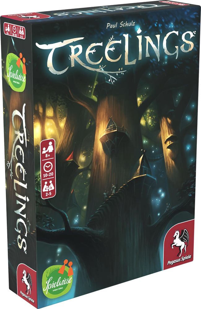 Bei Treelings versuchen die Spieler, möglichst hohe Bäume mit Aussichtsplattformen zu bauen. Dazu nimmt der aktive Spieler alle Karten einer Farbe vom Markt oder die Farben, von denen nur genau eine Karte ausliegt, und legt diese in die eigene Auslage. So entstehen nach und nach Kartenreihen vor den Spielern, die am Ende des Spiels gewertet werden. Doch Reihen, die benachbart zu einer längeren Reihe liegen, egal ob in der eigenen Auslage oder in der der Nachbarn, geben keine Punkte.