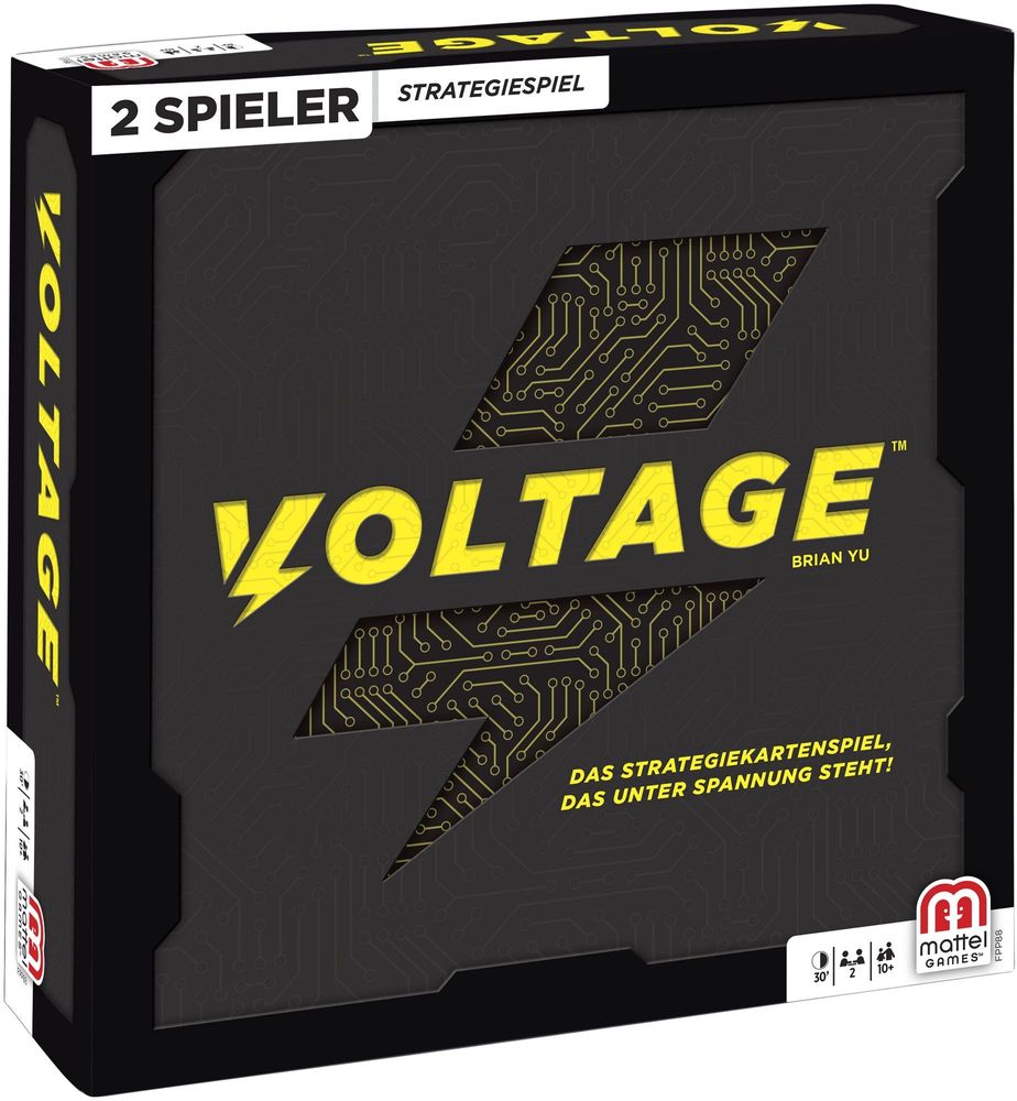 Voltage ist ein brandneues, schnelles und leicht zu erlernendes Kartenspiel für zwei Personen mit sich verändernden Stromstärken. Die Spieler legen abwechselnd Karten auf beiden Seiten des Spielbretts ab. Dabei müssen sie den Pol-Marker im Auge behalten. Sobald fünf Karten auf einer beliebigen Farbe liegen, bestimmt der Pol-Marker (hoch oder niedrig) den Gewinner dieses Punktes. Aktionskarten verleihen die Macht, den Pol-Marker umzudrehen und Karten auszutauschen oder zu entfernen. So kann ein einziger Zug das gesamte Spiel auf den Kopf stellen! Wer als erster Spieler 4 Punkte erzielt, gewinnt das Spiel! Voltage ist ein Spiel, das für genau 2 Spieler entwickelt wurde und schnellen, elektrisierenden Spaß bietet! Enthält 1 Spielbrett, 4 Pol-Marker, 2 Wertungssteine, 56 Karten sowie Spielregeln. Für 2 Spieler ab 10 Jahren. Abweichungen in Farbe und Gestaltung vorbehalten.