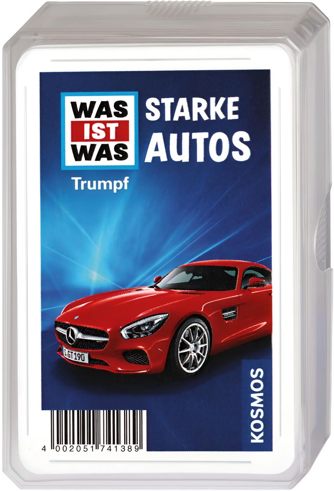 Ferrari oder Smart? Welches Auto ist das schnellste und dabei noch das umweltfreundlichste? Wer trumpft auf? In diesem Trumpfspiel rund um das Thema Autos, Leistung, Höchstgeschwindigkeit, Beschleunigung, Kraftstoffverbrauch und Co2-Emmission versuchen sich die Spieler zu überbieten. Jeder Spieler bekommt gleich viel Karten und los geht’s. Den vermeintlich siegessichersten Wert auf der obersten Karte in die Runde rufen und zittern – nur wenn kein Mitspieler einen besseren Wert zu bieten hat, ist der Trumpf gewonnen. Das bekannte Kartenspiel-Prinzip vermittelt so spielerisch Wissen und sorgt für Action-Spaß pur!
