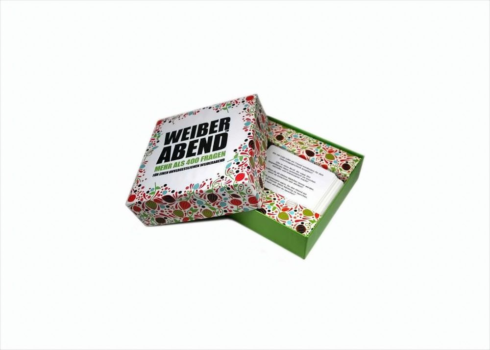 Bist Du bereit für den ultimativen Weiberabend? Weiberabend ist ein unterhaltsames Spiel mit über 400 lustigen, gewagten, verrückten und unerwarteten Fragen für einen unterhaltsamen Abend unter Freundinnen. Nichts ist heilig! Hier wird schonungslos über den Ex gelästert, Klatsch ausgetauscht, kuriose Erinnerungen preisgeben, über Prominente diskutiert, über Peinlichkeiten, Sex und viel viel mehr geredet...