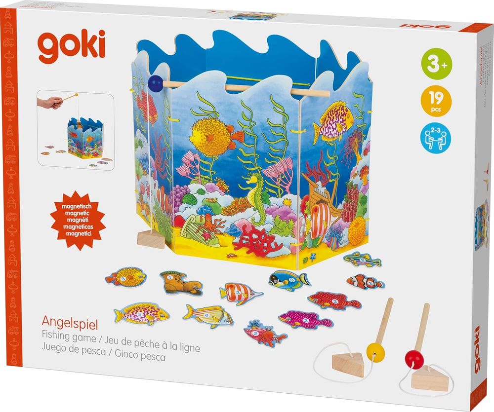 Das Angelspiel mit Magnet, 19-teilig bietet abwechslungsreichen Spielspaß für Kinder und die ganze Familie. Mit liebevoll gestalteten Fischen und Angelruten mit Magnetfunktion trainieren Kinder spielerisch ihre Feinmotorik, Hand-Auge-Koordination und Konzentration. Die magnetischen Elemente erleichtern das Angeln der Figuren und sorgen für schnelle Erfolgserlebnisse.