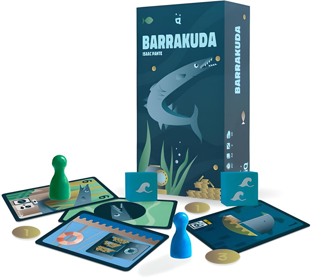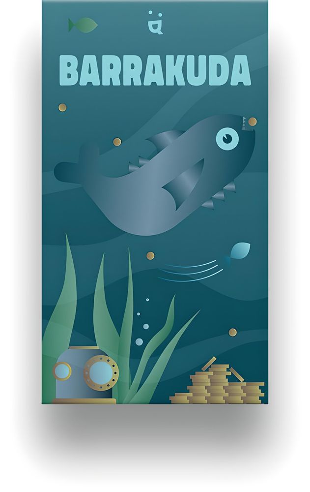 In Barrakuda suchst du nach Schiffswracks. Dein Ziel? So viel Gold wie möglich zu ergattern. Aber hüte dich vor den bissigen Brrakudafischen, die zwischen dern Wracks lauern, sie könnten dich bei deiner Suche aufhalten. Deine Strategie ist es, den Gefahren auszuweichen und deinen Schatz so schnell wie möglich an die Oberfläche zu bringen. Benutze deine Spezialkarte, um die Barrakudas auf deine GegnerInnen loszuschicken und sie dazu zu bringen, Zeit zu verlieren.