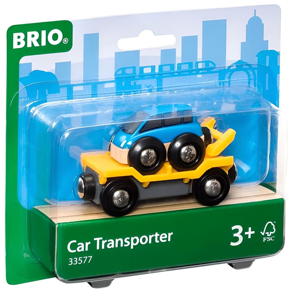 Ergänze deine BRIO Welt um diesen neuen Autotransporter und sein brandneues BRIO Auto. Lass das Auto über die kippbare Wagenrampe hoch- und runterfahren. Verbinde zwei und mehr Transporter miteinander für noch mehr Spaß – die Autos können so von einem Wagen zum anderen fahren!