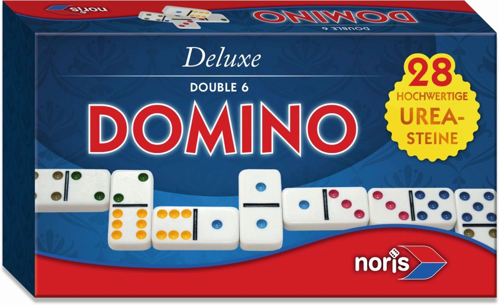 Spieleklassiker - Domino mit hochwertigen Urea Steinen in einer Schachtel mit Magnetverschluss.