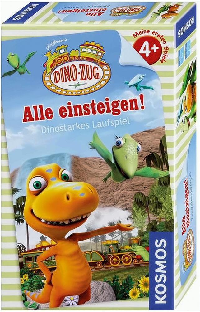 Alle einsteigen! Die Spieler fahren gemeinsam mit Buddy im Dino-Zug. Der Farbwürfel entscheidet an welchem Bahnhof der Zug als nächstes hält: dem Triceratops Tal, dem Pteranodon Felsen oder einem anderen der zehn Bahnhöfe. Wer eine passende Fahrkarte hat, darf diese ablegen. Mit dem Zeittunnel kommt man schneller ans Ziel. Wer als erster all seine Fahrkarten ablegen kann, gewinnt das dinostarke Laufspiel. Mit vielen zusätzlichen Informationen für alle Dino-Fans!