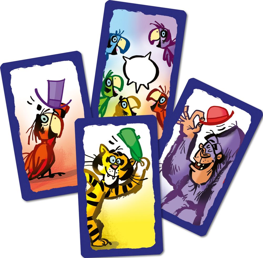 PLAPPARAGEI ist ein schnelles Ablegespiel, bei dem du die richtige Farbe oder die passende Tierart sagen, Plapparagei rufen oder auch einfach nachplappern musst. Aber war da nicht eine Farbe verboten? - Weißt du immer, was du sagen musst?