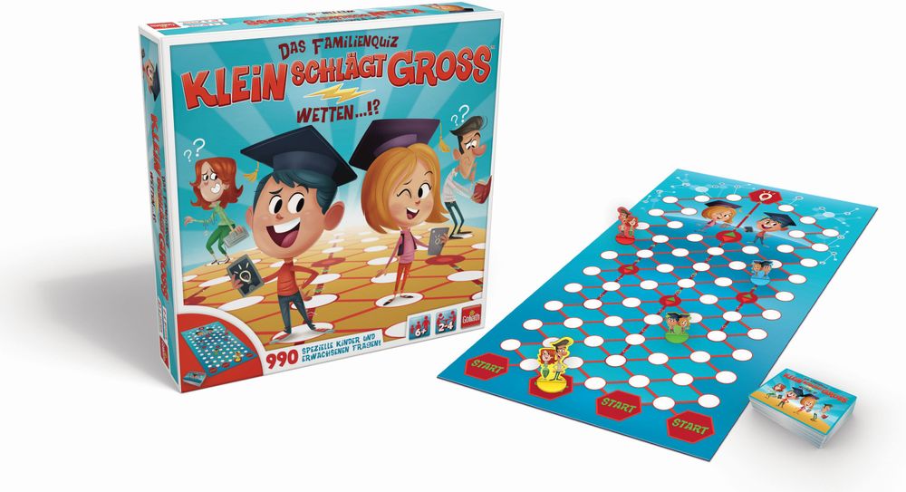 Erwachsene denken immer, sie wüssten alles besser. Aber ist das tatsächlich wahr? Bei Klein schlägt Groß spielen die Kinder gegen die Erwachsenen. Beide Teams müssen versuchen ihre zwei Spielfiguren ans andere Ende des Spielfeldes zu bringen. Abe