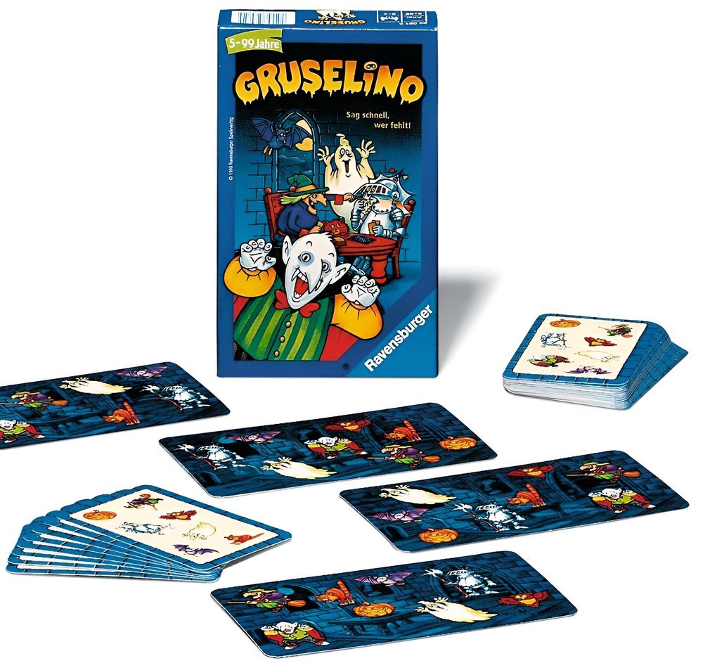 Bei dem spannenden Spiel Gruselino ist die Frage wer am schnellsten den fehlenden Geist findet: Kreuz und quer schweben die verschiedensten Geister im Gruselschloss. Doch aufgepasst: Einer fehlt immer
