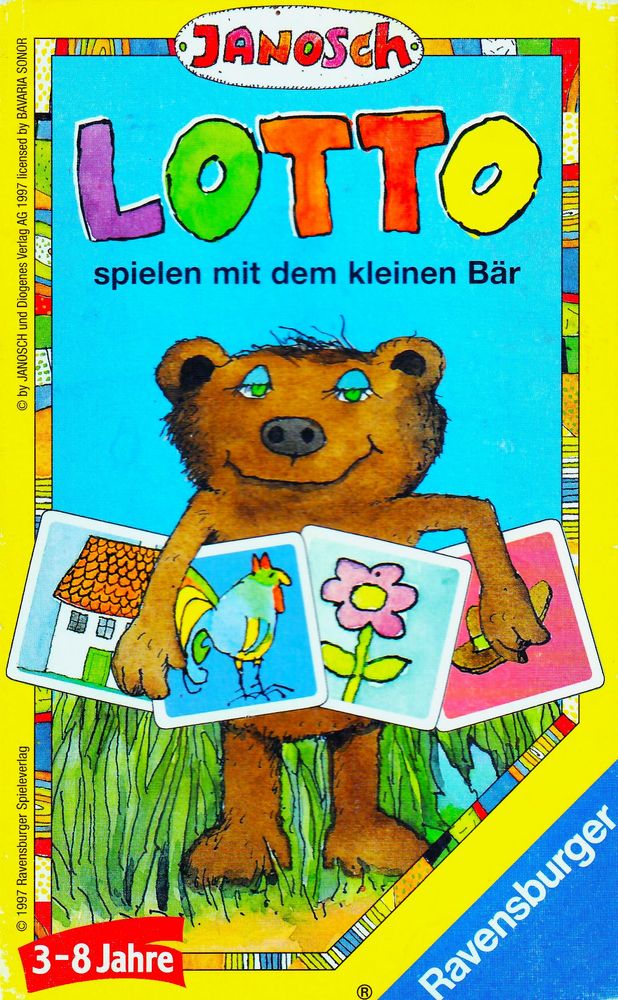 Janosch LottoHier der Tiger, da der Bär: Wer findet als Erster die passenden Bildkarten zu seiner Legetafel und gewinnt das Janosch Kinderlotto?