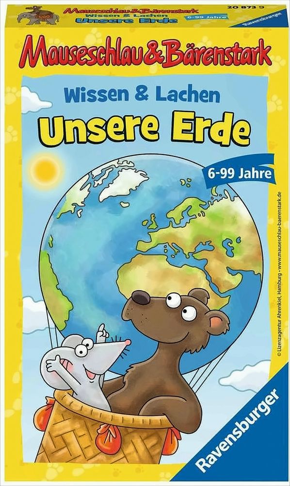 Wissen und Lachen - Unsere Erde ist ein spannendes Quiz- und Wettlaufspiel mit mauseschlauen Fragen und bärenstarken Aktionen rund um das Thema Erde. Mit altersgerechten Fragen und lustigen Aktionen können 2 bis 4 Spieler ab 6 Jahren ihr Wissen über Tiere, Länder und Kontinente testen, sich bewegen und dabei kräftig lachen!