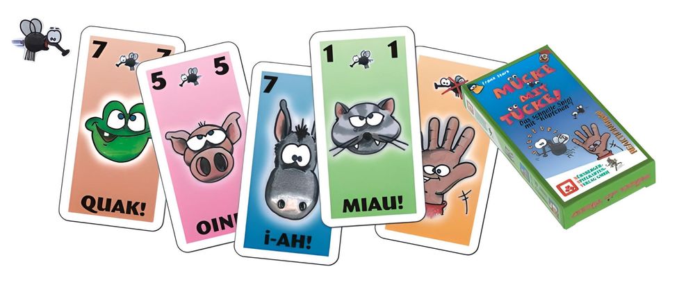 Reaktionskartenspiel Ein tierisches Duell zwischen den Spielern mit gleichen Karten. Wer erkennt schneller als der andere die Tiere (bzw. Werte) und reagiert richtig? Eigentlich simpel, wenn die Tücke der Mücke nicht wäre. Bei diesem Spiel trainieren jüngere und ältere Kinder spielerisch Fähigkeiten wie Konzentration, Aufmerksamkeit und Beobachtungsgabe. Spannung und Spielspaß sind, dank der lustigen Bilder und der originellen Regelvarianten, garantiert.