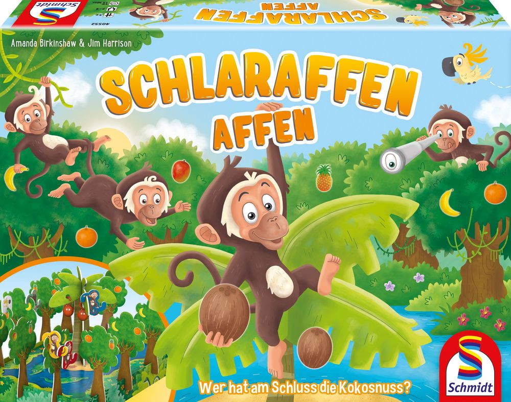 Im Affen-Schlaraffenland wachsen viele saftige Früchte an den Bäumen. Die Affenbande liebt vor allem die besonders süßen Kokosnüsse, die auf der Palme inmitten des Urwalds wachsen. Um zur Kokospalme zu gelangen, hangeln sich die lustigen Affen von Frucht zu Frucht durch den Wald. Dabei können sie sich auch gegenseitig mitnehmen. Denn wer sich an einen anderen Affen anhängt, kommt schneller voran. Wer holt zuerst die Kokosnuss seiner Farbe von der Palme und gewinnt das Spiel?