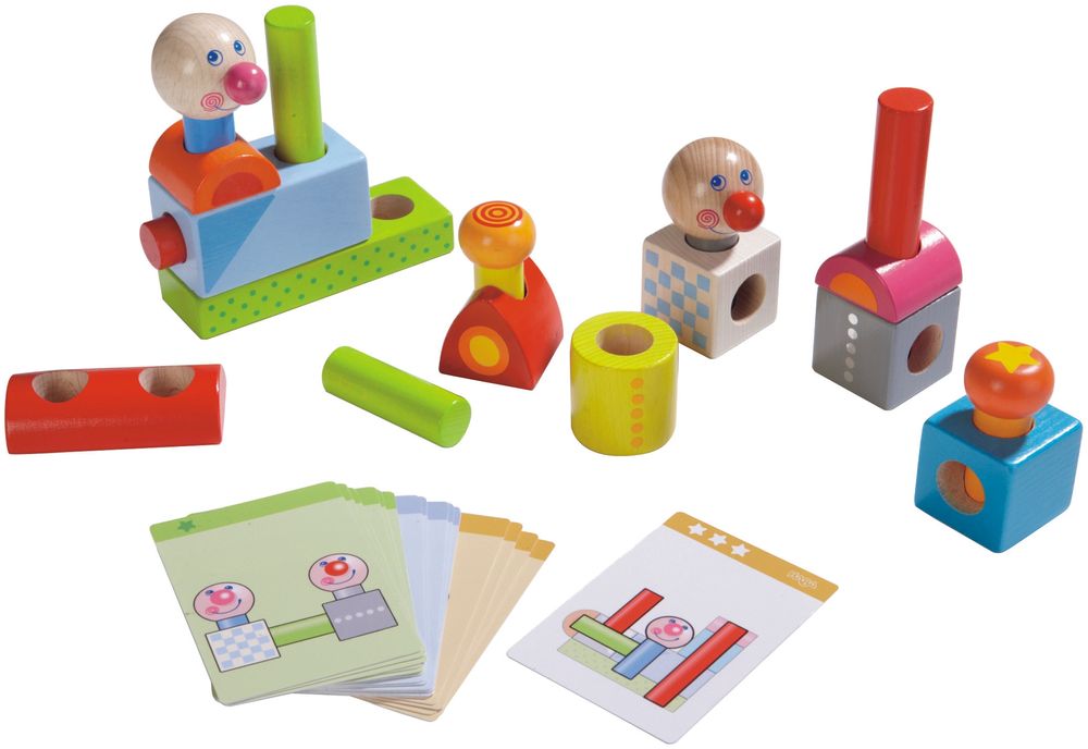Inhalt: 18 Holzteile, 20 Vorlagenkarten, 1 Anleitung. Material: Buche. Maße: Würfel 4 x 4 x 4 cm.