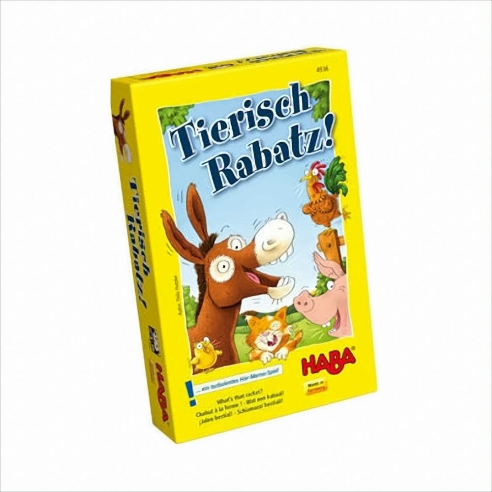 Ziel ist es, anhand der Tierlaute die Verstecke der frechen Bauernhoftiere zu finden.Ein turbulentes Hör-Memo-Spiel.
