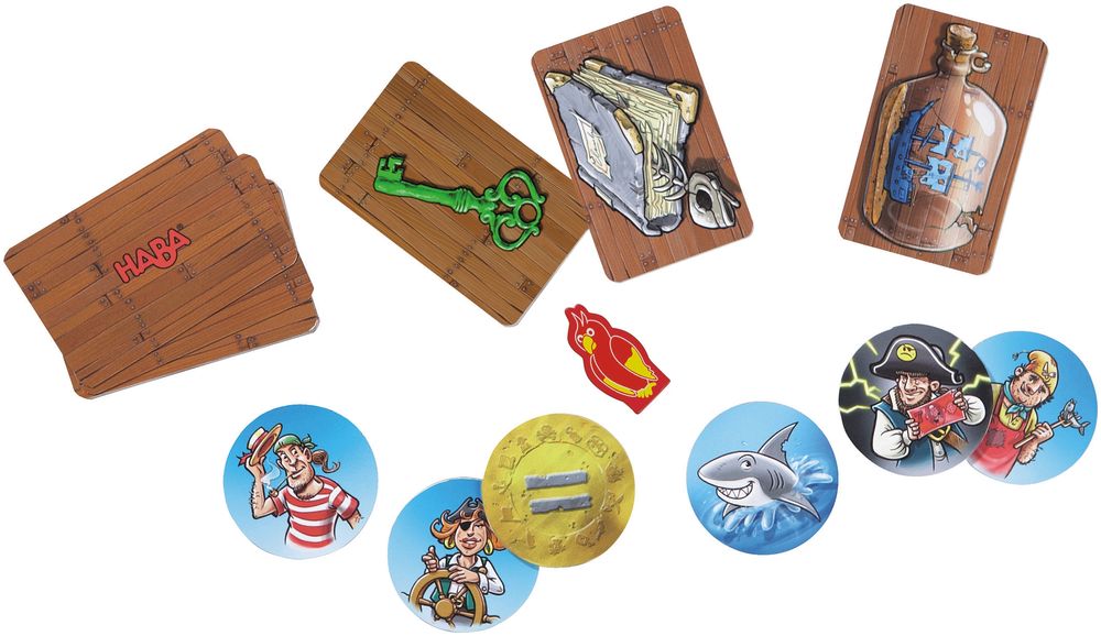 Spielinhalt: 1 Figur Papagei Koko,56 Beutekarten, 4 Piraten,1 Hai, 1 Fex-Münze,1 Spielanleitung