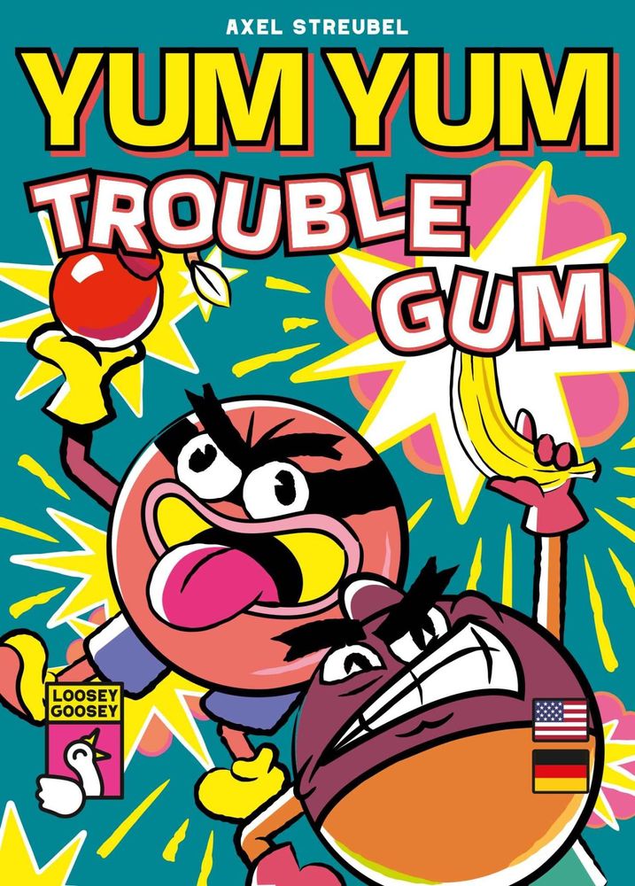 Das Ba-Ba-Banküberfall-Spiel mit nur einem Verlierer! YUM YUM Trouble Gum ist ein Kartenablegespiel. Wenn du am Zug bist, ziehst du eine neue Karte und/oder spielst eine passende Handkarte aus. Sobald alle nötigen Karten liegen, kann ein Ba-Ba-Banküberfall stattfinden. Hast du dabei entweder die richtigen Karten in der Hinterhand oder überhaupt keine Handkarten mehr, landet ein anderer Spieler im Knast.