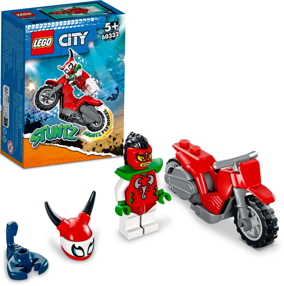 Lass das Stuntbike mithilfe des Schwungrads losflitzen und freu dich auf spannende Motorrad-Stunts mit dem LEGO® City Stuntz Team! Lass das LEGO City Stuntass Scorpion Luchadora mit ihrem Maskottchen (natürlich einem Skorpion!) atemberaubende Stunts vorführen. Zeig tolle Sprünge und spektakuläre Landungen! Gut festhalten. Diese gehörnte Motorradakrobatin ist eine echte Draufgängerin!