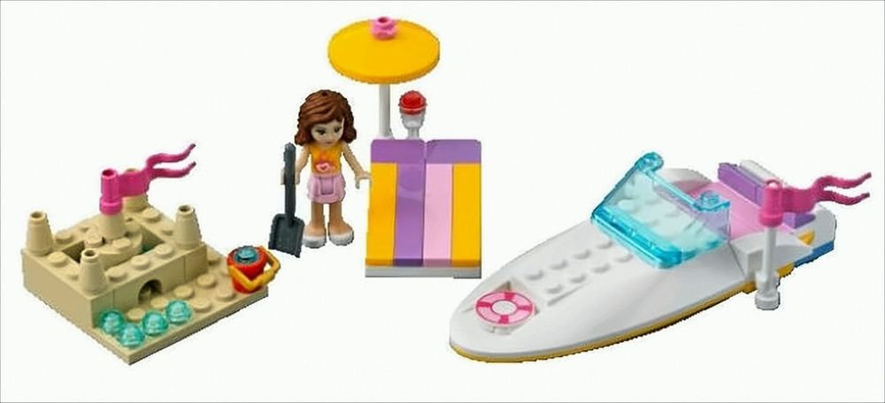 In Olivias Rennboot hast du garantiert jede Menge Spaß! Brause mit Olivia durch die Bucht und vergiss nicht, deine LEGO Friends Freundinnen mitzunehmen! Danach kannst du bei einem erfrischenden Getränk unter dem Sonnenschirm entspannen oder eine Sandburg bauen. Enthält die Spielfigur Olivia.