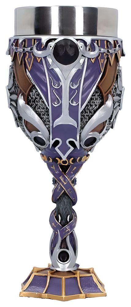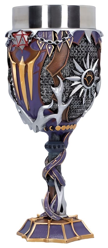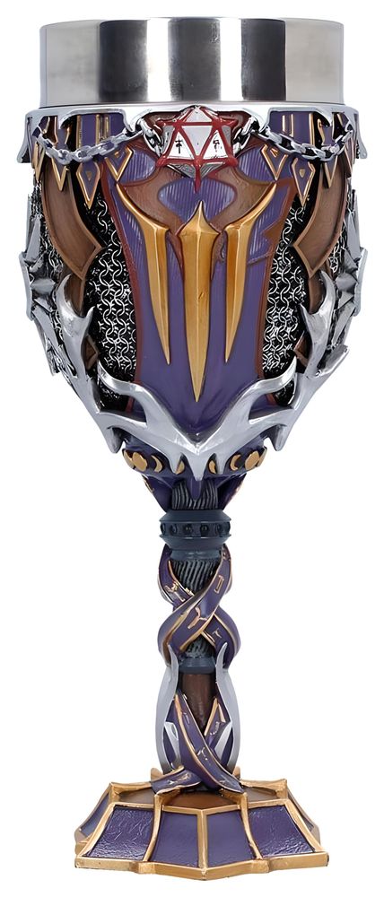 Die robuste Ausführung sorgt für eine angenehme Haptik, während filigrane Verzierungen die Atmosphäre der Spielwelt einfangen. Durch seine vielseitige Verwendbarkeit passt der Kelch sowohl in Sammlungen von Fantasy-Merchandise als auch in stilvolle Wohn- oder Arbeitsbereiche.