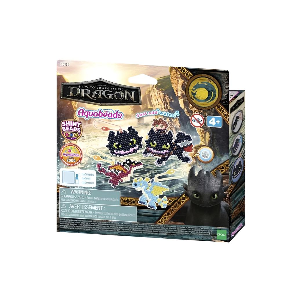 Mit dem Drachenzähmen leicht gemacht Aquabeads Bastelset Schlüsselanhänger gestalten Fans der beliebten Drachenwelt eigene, farbenfrohe Anhänger. Das Set enthält eine Auswahl an bunten Aquabeads, mit denen sich charakteristische Drachenmotive und Figuren Schritt für Schritt legen lassen. Durch das Besprühen mit Wasser verbinden sich die Perlen dauerhaft zu stabilen Formen.
