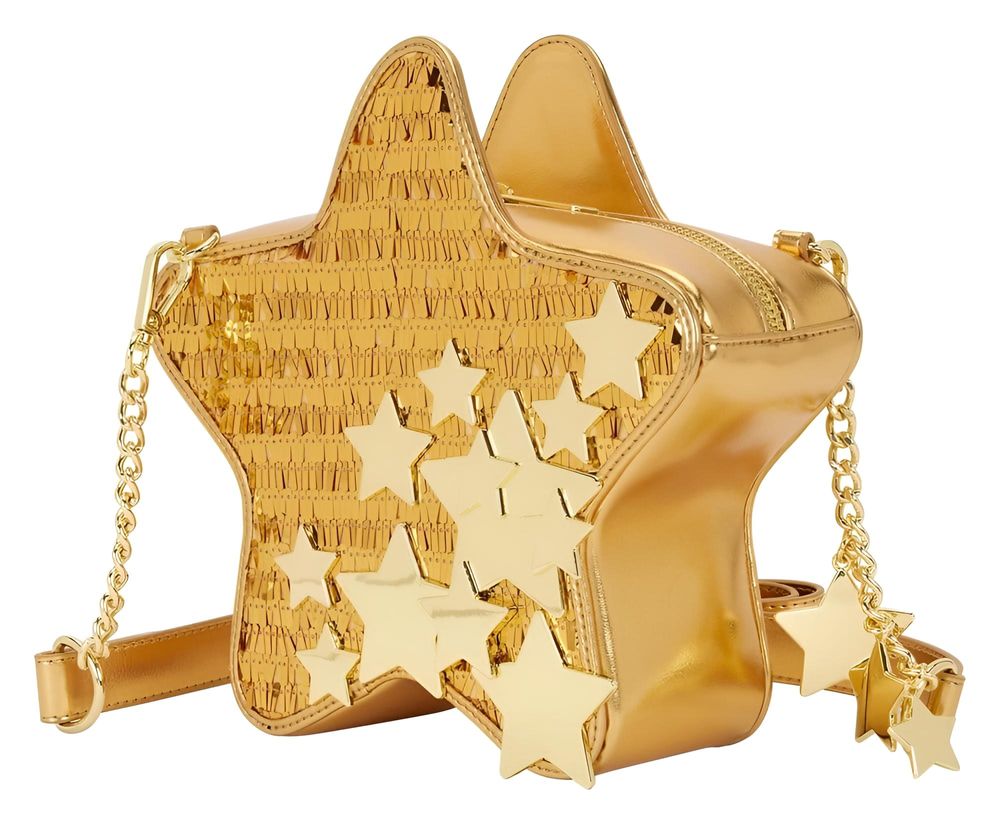Die Loungefly Umhängetasche Gold Stars kombiniert eine kompakte Form mit einem auffälligen Sternen-Design in edler Goldoptik. Die Tasche eignet sich ideal für Alltag, Freizeit oder besondere Anlässe und setzt modische Akzente, ohne auf Funktionalität zu verzichten. Dank des durchdachten Formats finden Smartphone, Schlüssel, kleine Geldbörse und weitere Essentials bequem Platz.