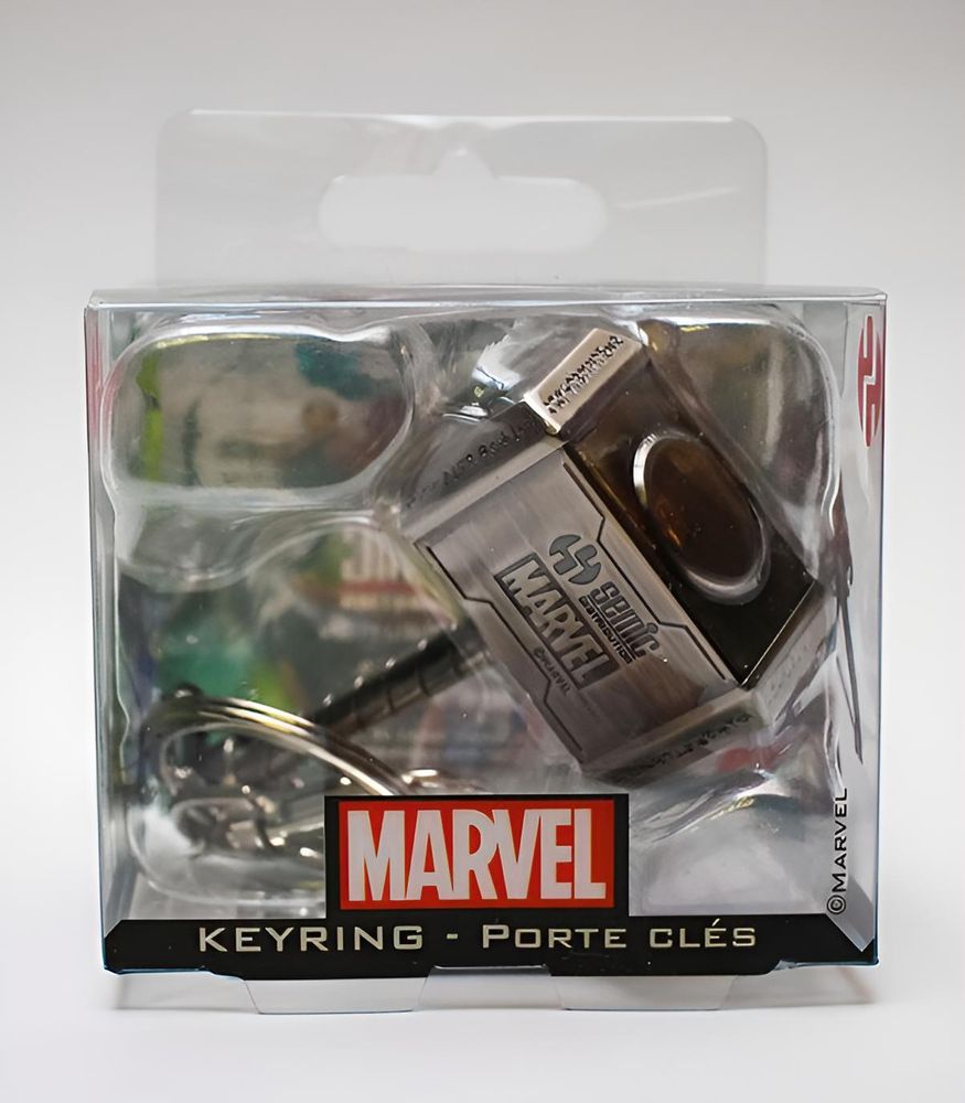 Der Marvel Comics Metall-Schlüsselanhänger Thor Hammer ist ein markantes Accessoire für alle Fans des Donnergottes. Der detailreich gestaltete Hammer aus Metall liegt angenehm in der Hand und verleiht jedem Schlüsselbund einen kraftvollen, heroischen Look. Durch sein kompaktes Format eignet sich der Anhänger ideal für den Alltag, ohne dabei aufzutragen.