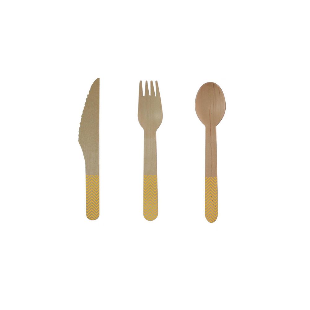 24-teiliges Holzbesteck-Set Gelb 8 Messer, 8 Gabeln und 8 Löffel