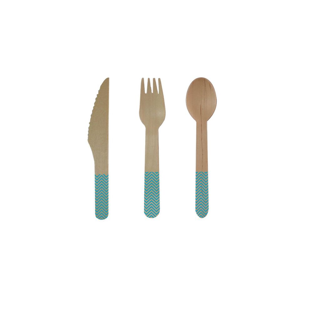 24-teiliges Holzbesteck-Set Türkis Blau 8 Messer, 8 Gabeln und 8 Löffel