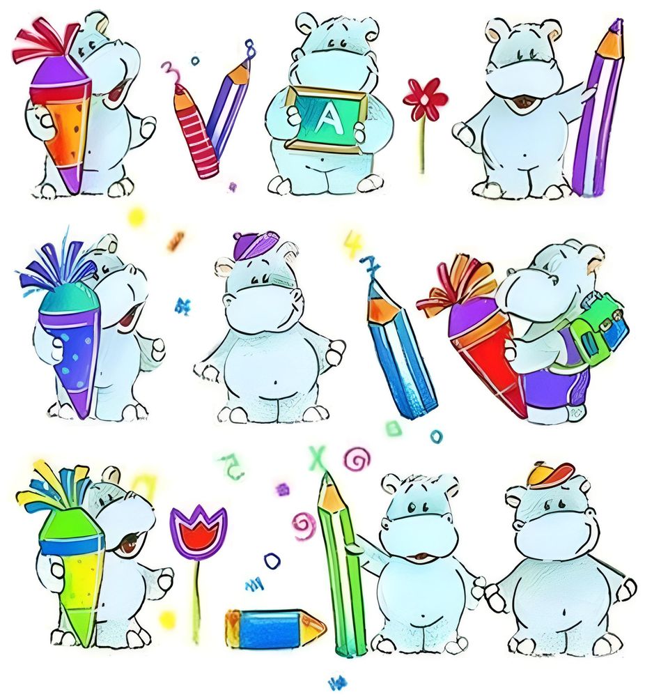 • Motiv: fröhliche School-hippos-Gestaltung für die Einschulung